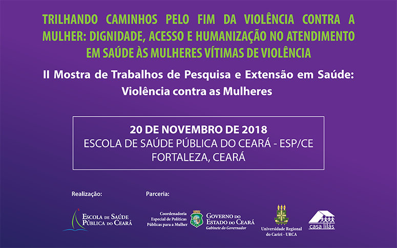 O evento, que ocorrerá na sede da ESP/CE, faz parte da campanha “16 dias de ativismo pelo fim da violência contra as mulheres”, cuja temática nesse ano é: “Trilhando caminhos pelo fim da violência contra a mulher: dignidade, acesso e humanização no atendimento em saúde às mulheres vítimas da violência”.